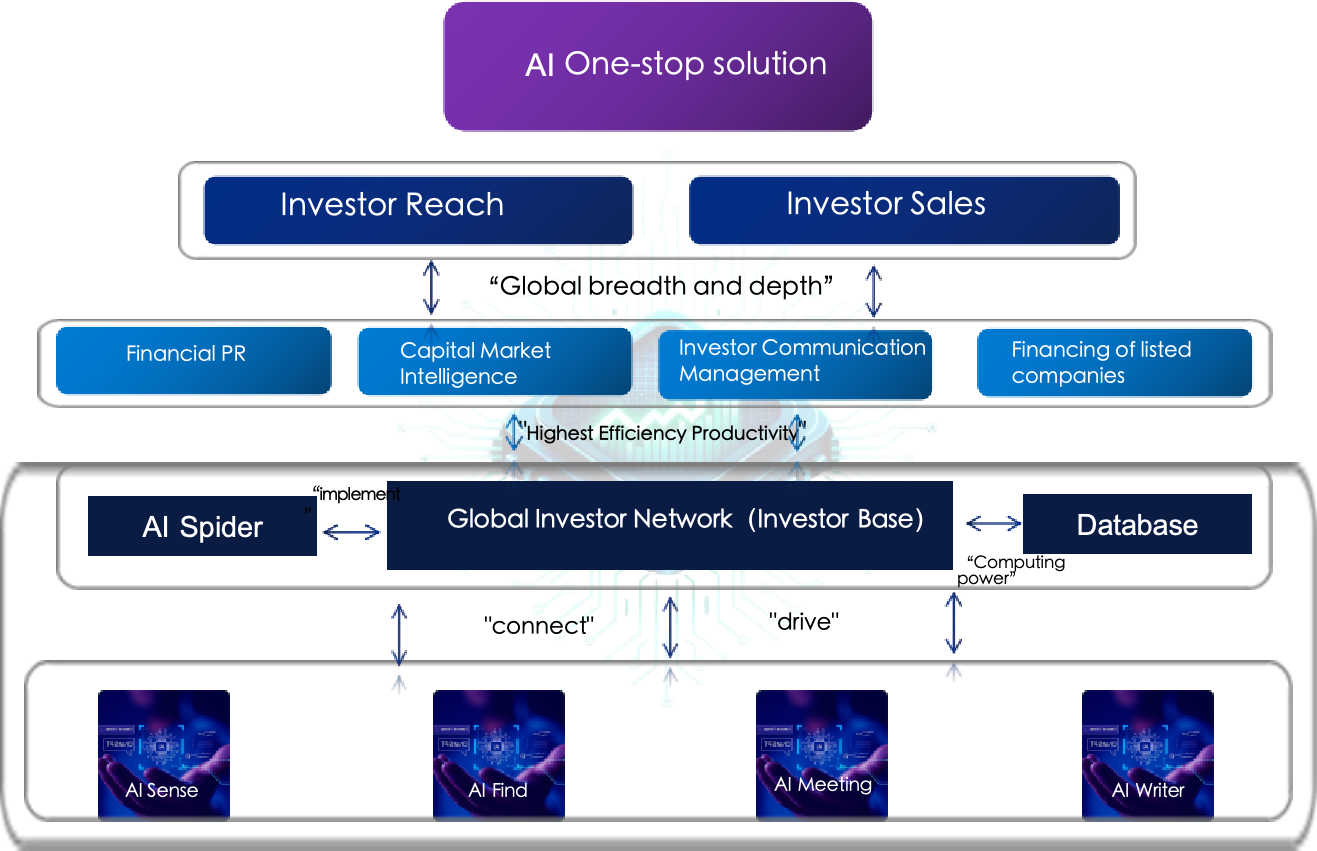 We focus on using artificial intelligence technology to improve investor relations management and are a global leader in financial public relations, market intelligence, investor communication, and listed company financing. In the industry, we have created multiple leading AI solutions that redefine the driving force of investor relations management, providing smarter and more efficient investor relations management services for global listed companies.