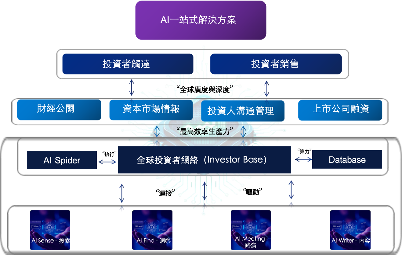 我們的科技賣出平台以人工智能技術爲基礎,通過AI大數據搜索全球資本市場裏的公司文件、活動記錄、專家訪談記錄、新聞、財經期刊、股票研究等,獲取最快最准確的資本市場情報。